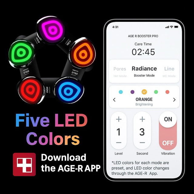 Das Beauty Device Age-R Booster Pro nutzt modernste Hautpflegetechnologie, um deine Pflegeprodukte tiefer in die Haut zu schleusen – für maximale Wirkung. Dank Elektroporation, Mikrostrom, EMS, elektrischen Nadeln, LED und Schallvibration wird jedes Serum oder jede Cream optimal aktiviert. Der Booster-Modus unterstützt die Aufnahme von Hautpflegeprodukten, während der Derma Shot-Modus gezielt die Elastizität fördert und deine Haut sichtbar strafft.